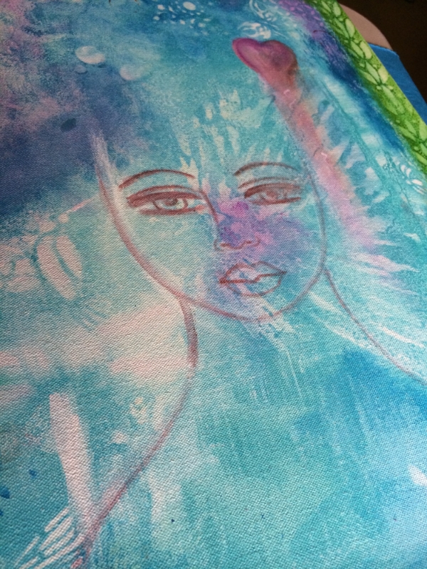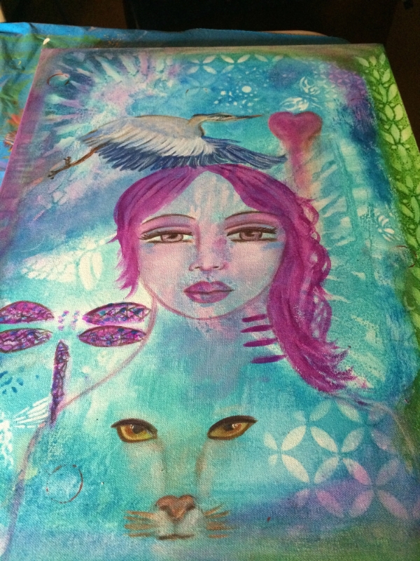 It feels very sacred, very intuitive, and I often feel as if I am letting go into another world and I am. Letting go into her spirit and listening to what "wants" to be in the painting. Sometimes things show up that were never discussed.